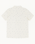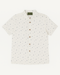 Stay effortlessly cool with this crisp white cotton shirt featuring a subtle all-over blue micro print. Designed with a button-down collar, short sleeves, and a neatly tailored fit, it blends casual comfort with smart styling. The chest pocket adds a touch of practicality, while the wooden-effect buttons complete the look with a refined finish. Lightweight and breathable, this shirt is perfect for warm weather and versatile enough for casual outings or smart-casual events.